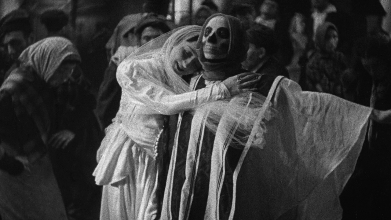 In 1920, S. Ansky’s play The Dybbuk, or Between Two Worlds premiered in Warsaw. Set in the Pale of Settlements, another of the arbitrary tools of disembodiment set upon Eastern European Jews, the play tells the story of a community besieged by a malevolent force from the Jewish beyond as a Dybbuk, originating from the spirit of a maligned lover, possesses his would-be-bride after a consult with Kabbalist magic goes wrong and kills him. The play itself is dramatic and stunning but I’m especially moved by the 1937 film adaptation. Modulating the plot slightly, the film tells the story of a young student, Chanan, who falls in love with Leah, the daughter of a rich Rabbi. Knowing the Rabbi won’t agree to wed his daughter to someone as poor as him, Chanan obsessively studies Kabbalah to find some magical way to change his circumstances. But it’s too late, Leah is promised to a rich man’s son. In a haunting scene of desperation, he summons a demon in a Mikvah, a Jewish ritual bath, to help him but the shock of witnessing a tear in reality kills him. He returns soon after as a Dybbuk and possesses Leah to stop the wedding. This is represented is one of the more beautiful and hypnotic scenes I’ve seen in a film. In a “dance with death,” the whole of the town is stunned into a delirium and lurch to a haunting klezmer waltz as the spectre of death emerges from the crowd, grabs Leah and, flashing its fractured personhood, seemingly hypnotizes her and marches her off screen to possess her body.
